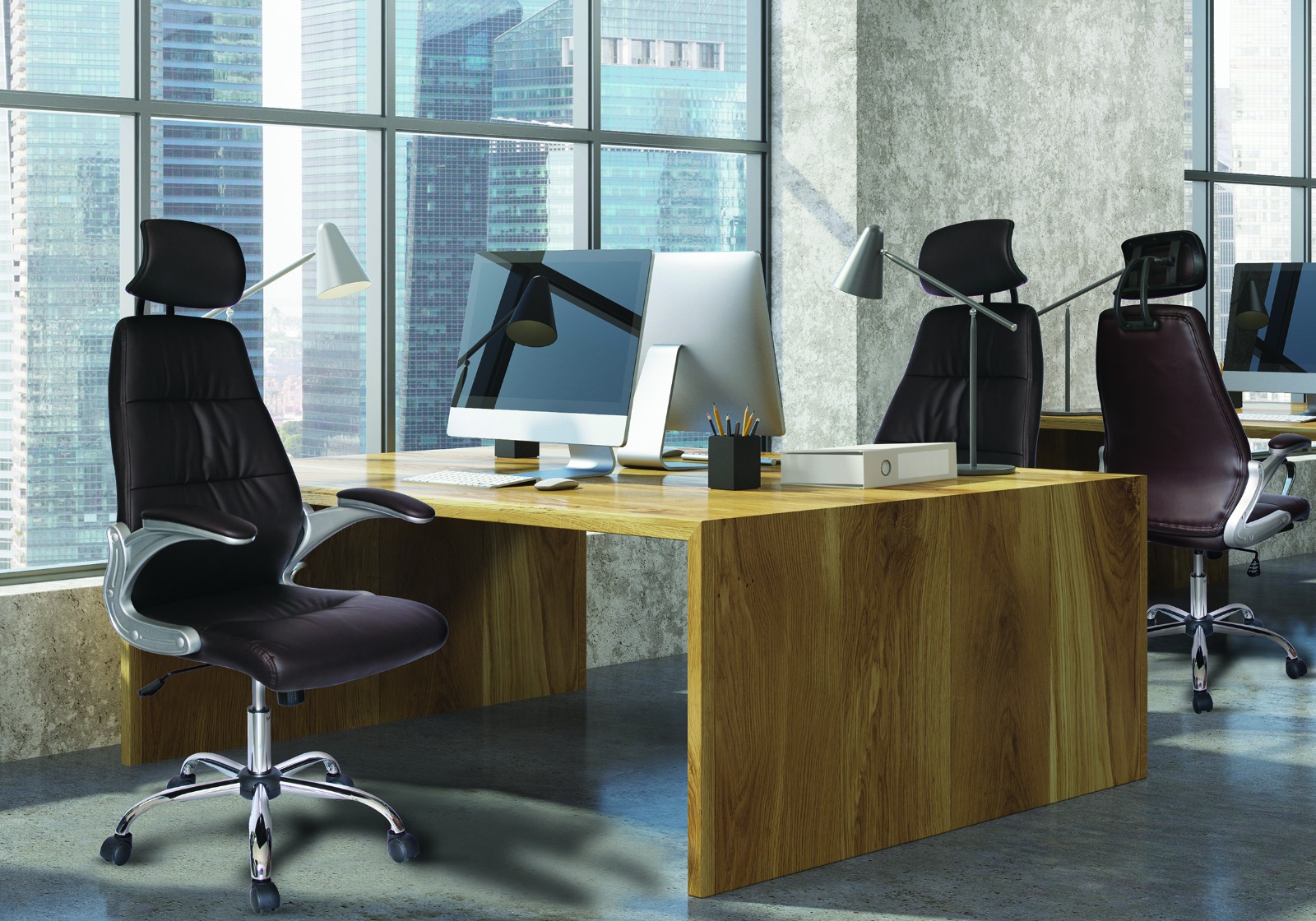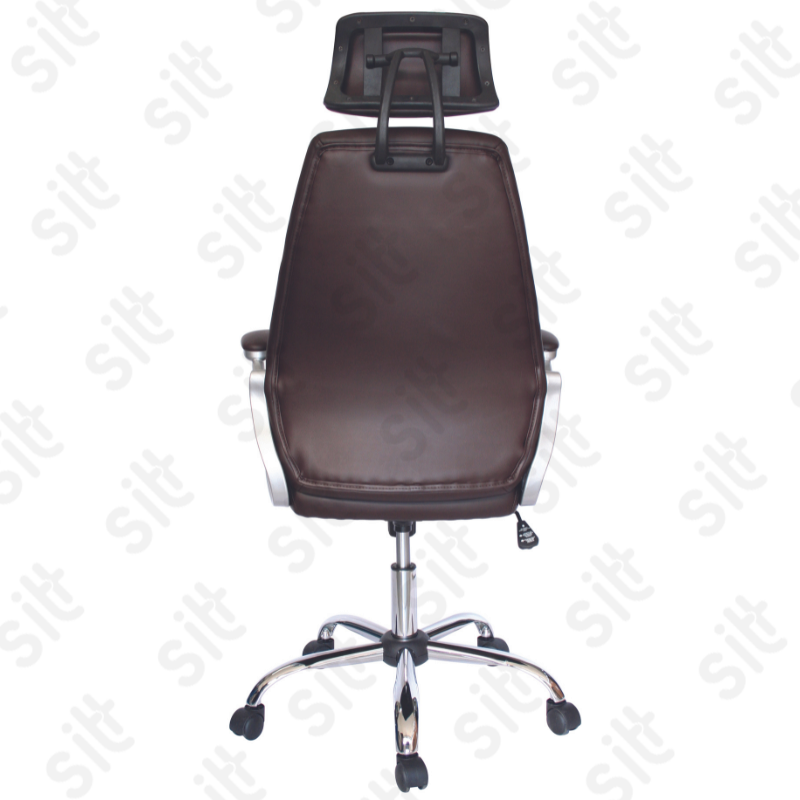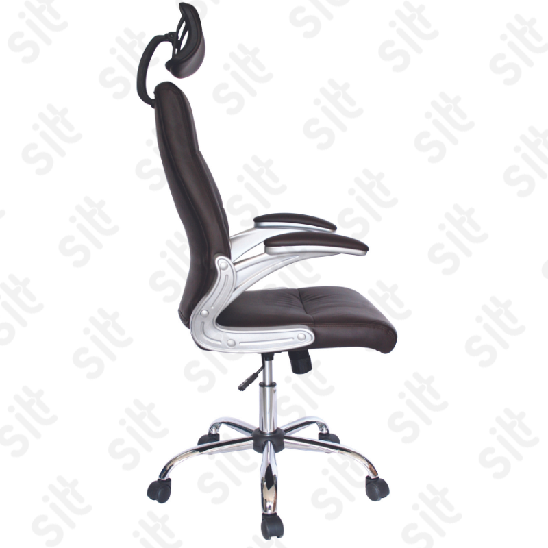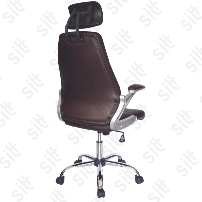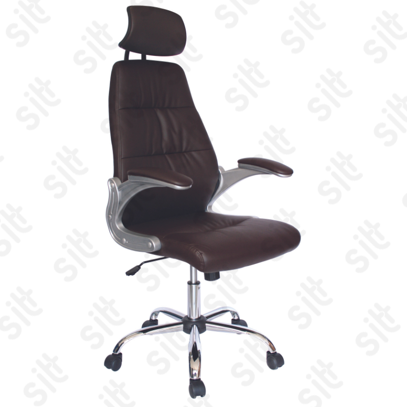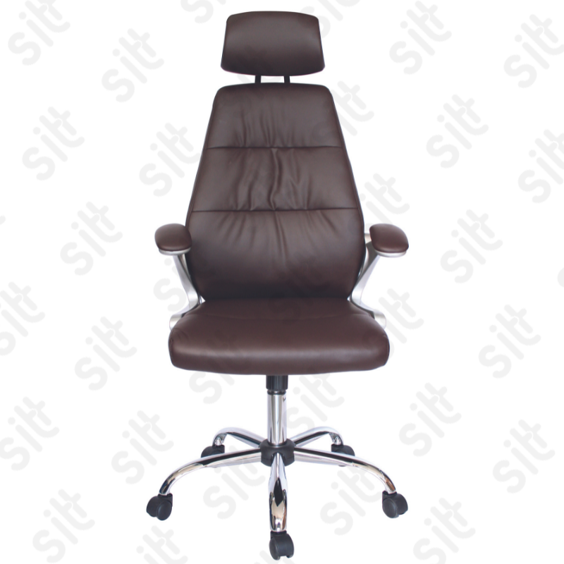 Silla Ejecutiva Modena - MODERNA SILLA EJECUTIVA CON RESPALDO ALTO YSOPORTE LUMBAR, COMPELTAMENTE TAPIZADA EN VINYL COLOR CHOCOLATE, BRAZOS ACOJINADOS Y TAPIZADOS , ELEVACIÓN PNEUMÁTICA Y MECANISMO CON BLOQUEO