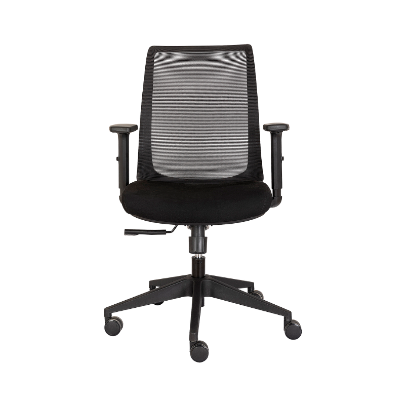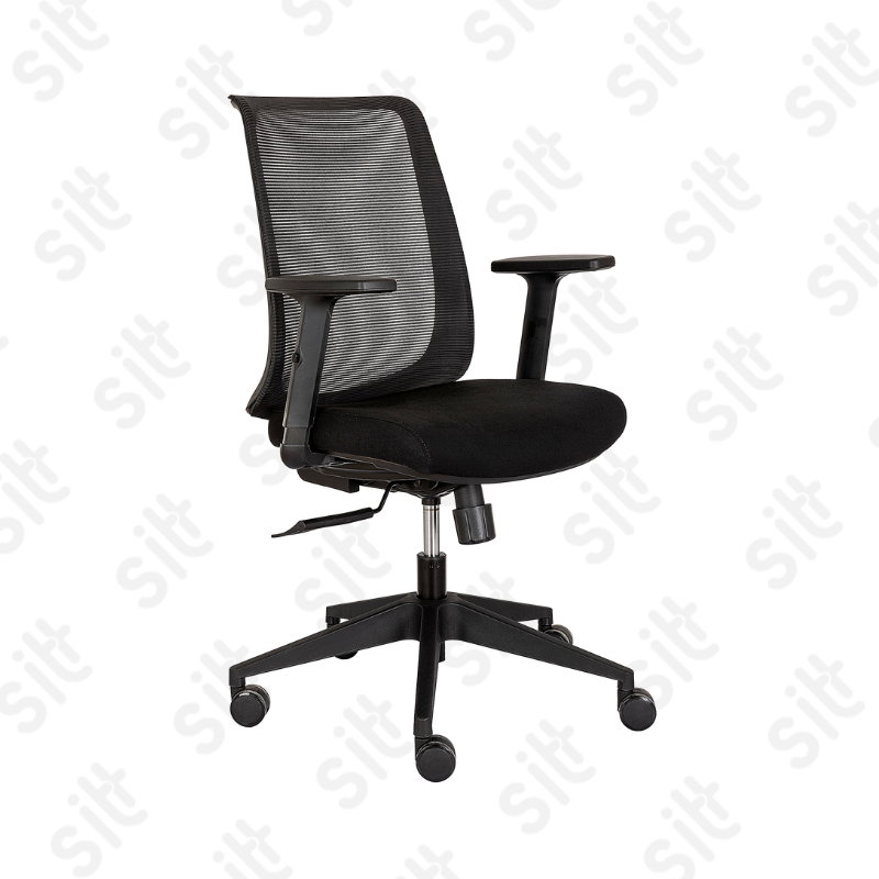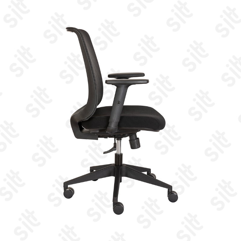 FRESCA Y CÓMODA SILLA SEMIEJECUTIVA CON RESPALDO DE MALLA, ASIENTO TAPIZADO, CON CODERAS ACOJINADAS Y RECLINAMIENTO. EXCELENTE TAMBIÉN PARA GRUPOS DE TRABAJO